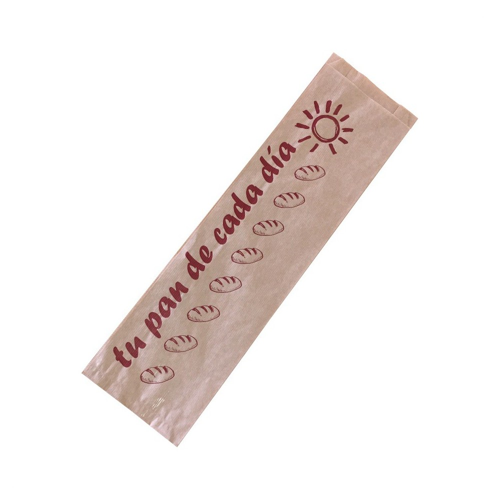 Las bolsas de papel kraft para pan de 1 barra, es un tipo de bolsa ideal para expender tus barras de pan con total profesionalidad e higiene. Contamos con la posibilidad de personalizar tus bolsas con tu logo. Para saber precios de la impresion consultanos.