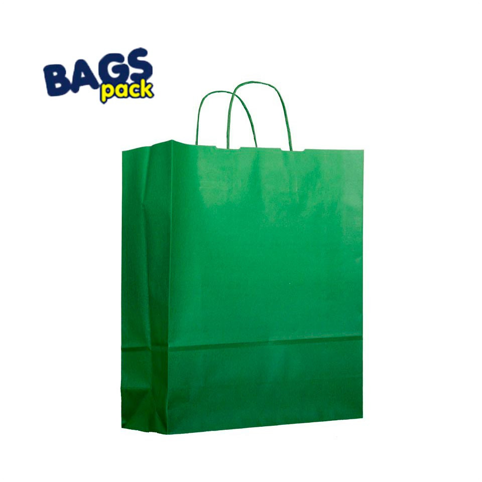 La bolsa papel kraft verde es un modelo de bolsa utilizada por todo tipo de comercios como supermercados, panaderías, tiendas de moda, etc. Es la mejor manera de proteger y transportar tus productos, ya que son de una gran resistencia y versatilidad. Estas bolsas de papel darán un aspecto mas natural y ecológico a tu negocio puesto que es un producto biodegradable y no contaminante.