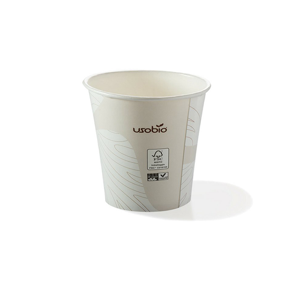 Vasos biodegradables compostación ideal para espresso y bebidas calientes, bosques de gestión responsable FSC certificada según EN13432; son con cartón (desde el maíz), combinado con una capa de pla, un bioplástico, la ventaja es que usted puede lanzar en húmedo/orgánico: el rechazo por el compost de residuos será un recurso para temperaturas de hasta 95 °C la temperatura ambiente.